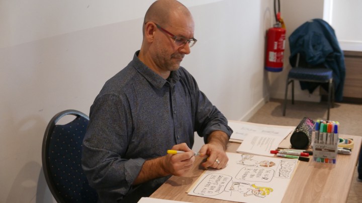 Live cartoons voor Homeras 18 september 2019door Arnout Fierens Live cartoon sessie in Tubize. Met mijn geesteskinderen Albert&Claire Repair, een creatie voor Homeras. Dit delen: Klik om te delen op X (Opent in een nieuw venster) X Klik om te delen op Facebook (Opent in een nieuw venster) Facebook Klik om op LinkedIn te delen (Opent in een nieuw venster) LinkedIn Klik om op Pinterest te delen (Opent in een nieuw venster) Pinterest Klik om dit te e-mailen naar een vriend (Opent in een nieuw venster) E-mail Vind-ik-leuk Aan het laden... Gerelateerd