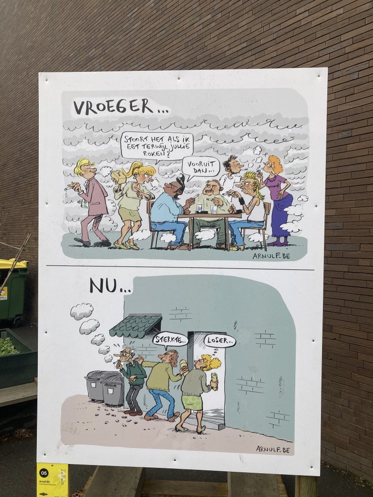 Gerookt 5 november 2022door Arnout Fierens Mijn bijdrage voor cartoonwandeling ‘Gerookt’ in Wervik, in samenwerking met het Nationaal Tabaksmuseum. Nog te bekijken tot 6 november.. Curator en collega André Nollet heeft dat prima gedaan 🙂 Dit delen: Klik om te delen op X (Opent in een nieuw venster) X Klik om te delen op Facebook (Opent in een nieuw venster) Facebook Klik om op LinkedIn te delen (Opent in een nieuw venster) LinkedIn Klik om op Pinterest te delen (Opent in een nieuw venster) Pinterest Klik om dit te e-mailen naar een vriend (Opent in een nieuw venster) E-mail Vind-ik-leuk Aan het laden... Gerelateerd